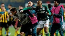Peñarol y Palmeiras protagonizaron un final de juego escandaloso en Uruguay. En el encuentro correspondiente a la cuarta fecha del Grupo 5 de la Copa Libertadores, zona de la que también forman parte Atlético Tucumán y Jorge Wilstermann, terminó con una bochornosa batalla campal dentro del campo y con incidentes en las gradas. Tras una remontada memorable del conjunto brasileño, que se llevó un triunfo por 3-2 luego de comenzar el duelo dos tantos abajo, el brasileño Felipe Melo se burló de los jugadores del elenco uruguayo y de inmediato se desató una multitudinaria pelea entre ambos equipos. Tras la remontada de Palmeiras ante Peñarol, el encuentro finalizó con golpes de puño entre ambos equipos. Felipe Melo fue uno de los futbolistas más activos en la batalla campal dentro de la cancha. Yeferson Quintana, zaguero charrúa, fue el primero en ir en búsqueda del experimentado mediocampista brasileño, pero quien se mostró más molesto fue otro volante de gran trayectoria: Cristian el Cebolla Rodríguez. Como si fuera poco, el escándalo y las discusiones entre los jugadores siguieron en el túnel de vestuarios. Con el colombiano Yerri Mina a la cabeza, los jugadores de Palmeiras siguieron burlándose de los integrantes del club uruguayo en las adyacencias a los vestidores, donde hubo empujones e insultos entre jugadores y allegados de los dos equipos. Por último, la violencia exhibida por los futbolistas contagio a los hinchas de las tribunas. Las trompadas y corridas en pleno campo de juego continuaron luego en las gradas, con serios incidentes entre los fanáticos de Peñarol y Palmeiras. La Policía local tuvo que intervenir de inmediato. La tensión del campo de juego se trasladó a las tribunas del estadio Campeón del Siglo (Reuters) Los agentes de seguridad estuvieron desbordados ante la gran cantidad de hinchas brasileños y uruguayos que se sumaron a los incidentes. En las tribunas, los fanáticos quitaban las butacas del estadio Campeón del Siglo y se las arrojaban a los policías. "Es lamentable que pase esto. También es culpa nuestra por alborotar un poco el ambiente, pero teníamos las pulsaciones a mil y no nos gusta perder. Un poco por eso se revolucionó todo, una lástima", reconoció el atacante Junior Arias, jugador de Peñarol, en una entrevista a Fox Sports mientras la tribuna era un desmán. Con esta derrota, Peñarol, que se había puesto en ventaja por intermedio de Mauricio Affonso y Junior Arias, se ubica último en la tabla de posiciones con tres unidades. Mientras que Palmeiras, que remontó con un doblete de William y el un gol de Yerri Mina, es el líder con 10 unidades. Fuente: Infobae