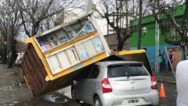 Un fuerte temporal de lluvia, viento y granizo afectó esta mañana a la ciudad de La Plata y zonas aledañas, donde hubo anegamiento de calles, voladura de techos y caída de árboles y de postes de servicios públicos, en tanto que algunos barrios quedaron sin energía eléctrica, pero no se registraron heridos. Mirá los videos al final de la nota. En tanto, en la intersección de las calles 41 y 22 un puesto de diarios fue arrastrado por los fuertes vientos y terminó impactando contra un automóvil que estaba estacionado a varios metros, aunque nadie resultó lesionado. "Fue tan rápido que no dio tiempo a nada. Estaba con un cliente, empezó a llover y a los tres segundos el puesto estaba tumbado sobre el auto", contó Giselle, la empleada que estaba dentro del puesto y que tuvo que ser ayudada por vecinos a salir.  La dirección de Defensa Civil de la Municipalidad platense informó que las precipitaciones más fuertes se produjeron pasadas las 8, con la caída de granizo en varias zonas de la periferia y una lluvia torrencial. "Llovieron 15 milímetros en menos de cinco minutos, lo que generó algunos anegamientos y la caídas de árboles y postes de luz", explicó el subsecretario de Atención del Riesgo de la Municipalidad, Rodrigo Páez. "Esperamos en las próximas horas se normalice la situación", agregó en un comunicado, y remarcó que "se mantendrá el trabajo de las cuadrillas para liberar las calles y que la gente pueda transitar con tranquilidad y sin problemas". Otras fuentes del Municipio precisaron a DyN que hasta el mediodía no se habían registrado "evacuados ni heridos" y afirmaron que los mayores daños fueron la voladura de techos, caídas de árboles y postes de luz, que dejó sin suministro eléctrico a varios barrios. La Dirección de Hidrometeorología de La Plata informó que los arroyos de la ciudad "escurren con normalidad" y recordó que se mantiene el pronóstico de "inestabilidad meteorológica para lo que resta de la jornada". Además, voceros del municipio de la capital bonaerense recordaron que, "ante cualquier situación de riesgo y en casos de emergencias, los vecinos pueden comunicarse al 911 y al 103 de Defensa Civil" o a la línea de atención para reclamos o pedidos 0800-999-5959. Fuente: DyN